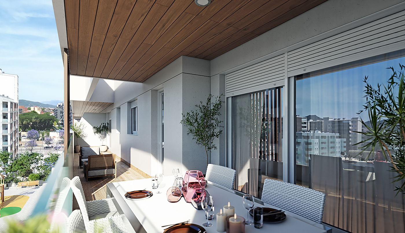 Las viviendas de 2, 3 y 4 dormitorios ofrecen distintas tipologías: bajos con terrazas que invitan al descanso, áticos que capturan la belleza del entorno y viviendas en planta tipo, todas concebidas con terrazas que potencian la vida al aire libre. Ideal para disfrutar del ambiente mediterráneo, ya sea en una estancia prolongada o en periodos vacacionales.
