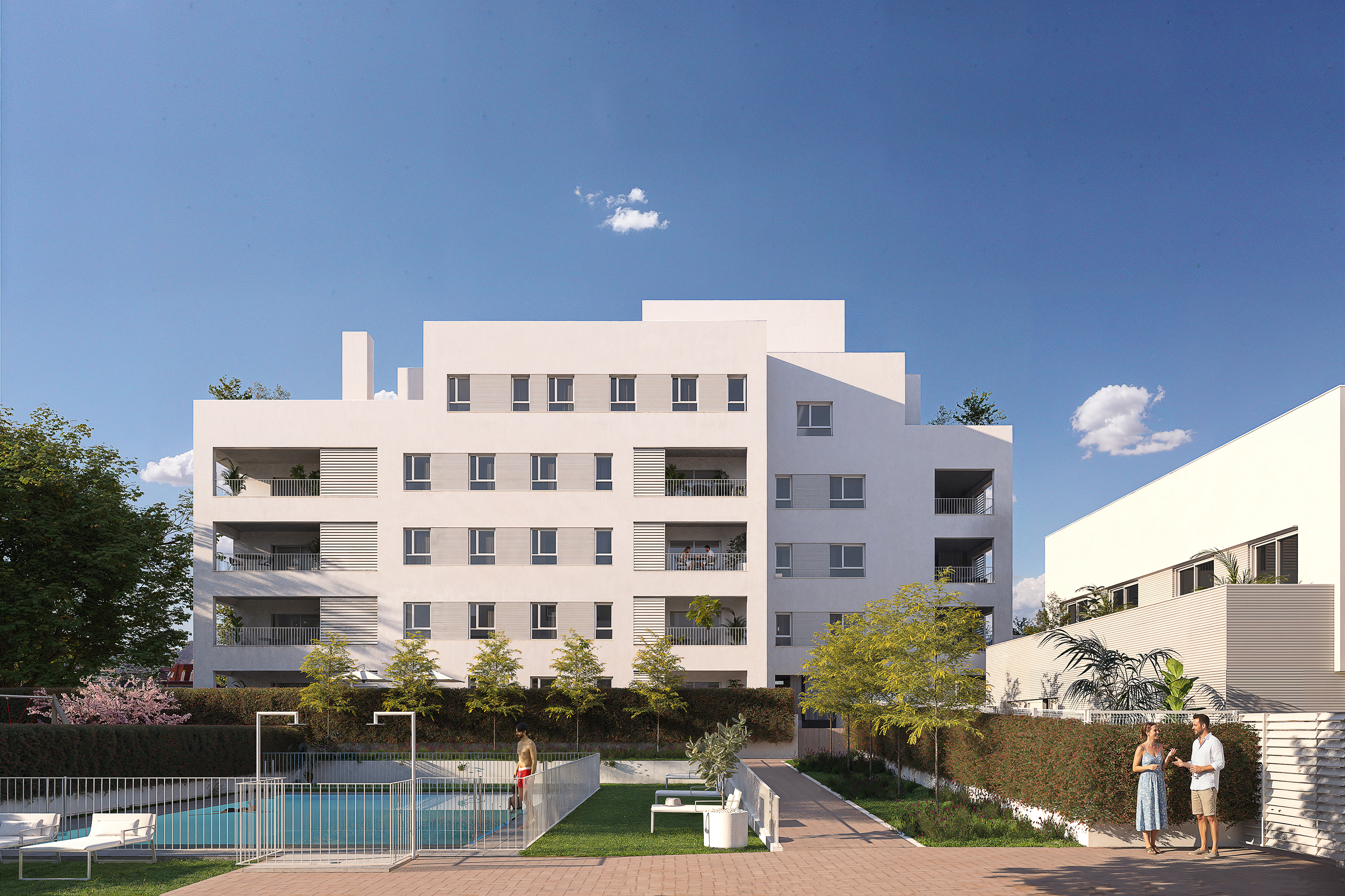 Un proyecto único con amplias viviendas en torno a los 130m2. La promoción cuenta con 4 exclusivos chalets unifamiliares pareados de 5 dormitorios, piezas verdaderamente singulares dentro del conjunto. El resto de las viviendas, de 3 y 4 dormitorios, cuentan con grandes terrazas que permiten disfrutar de espacios abiertos y luminosos durante todo el año.